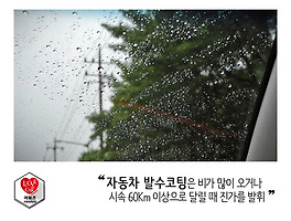 레인OK 유리발수코팅은 시속 60km/h 이상으로 달릴 때 더욱 확실한 효과를 느낄 수 있습니다. 와이퍼를 사용하지 않아도 빗물이 위를 향해 흘러가기 때문에 시야 확보가 가능합니다.