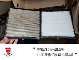 중고로 자동차 육삼이를 만난 이후, 겨울이 지나고 미세먼지로 가득한 봄이 되서야 에어컨 · 히터 필터를 교체하신 최가온 님! 아스팔트와 호형호제할 정도로 각종 흙먼지와 이물질 등 본래의 색을 알아볼 수 없는 정도로 에어컨 · 히터 필터의 색깔이 변한 모습을 보실 수 있습니다. 미세먼지보다 더 나쁜 오염된 에어컨 · 히터 필터를 그대로 놔둔 채 코와 입으로 들어갔을 생각을 하니 호흡기 건강은 괜찮으신지 걱정이 되네요. 꾸준한 에어컨·히터 필터 교체의 중요성을 느끼는 순간입니다.