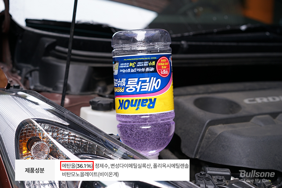 자동차 워셔액은 크게 60~70%가량의 물과 30~40%의 에탄올 그리고 5% 미만의 계면활성제로 구성됩니다. 워셔액 구매 전에는 반드시 에탄올 함량을 확인하는 것이 좋은데요. 특히 에탄올 함유량이 기준보다 낮으면 세정력 등 기능이 떨어질 수 있으며, 겨울철에는 쉽게 얼어붙을 수 있습니다. 반면에 에탄올 함유량이 너무 높으면 특유의 알코올 냄새로 두통이나 현기증 등이 생길 수 있으니 유의하세요!
