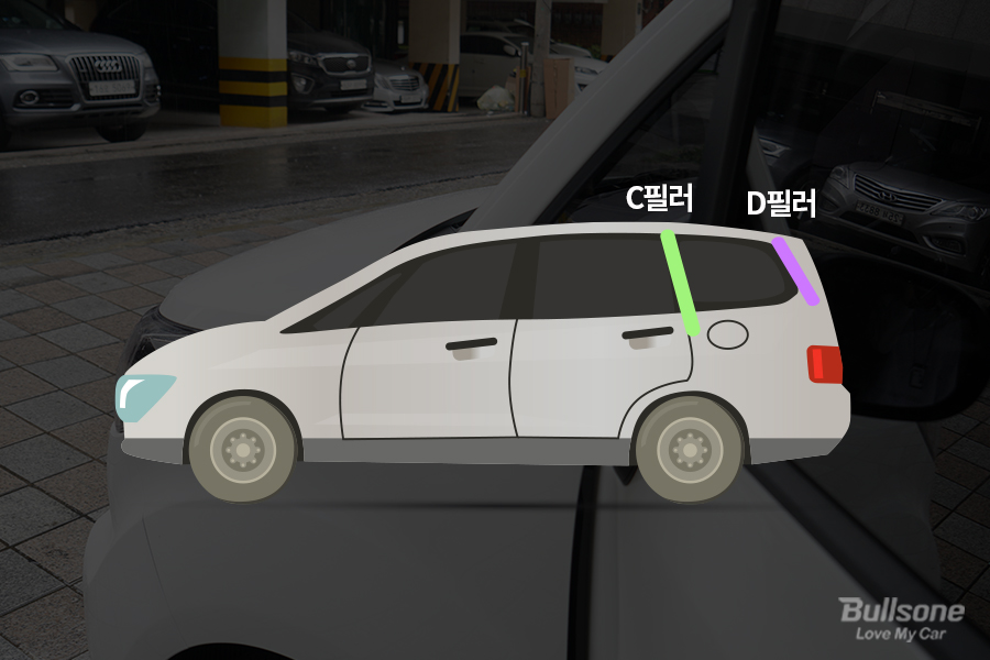 리어 필러라고도 하는 C, D필러는 차량 뒤쪽 유리나 해치백 등과 이어지는 기둥을 이릅니다. 일반적인 세단은 C필러까지 있으며 왜건, 미니밴, 7인승 이상의 SUV 차량에는 D필러까지 있습니다. C, D 필러 역시 기본적으로 차량의 강성을 강화하기 위해 필요한 부품으로 뒷좌석 탑승자의 안전을 지켜주는데요. 차량 뒤쪽에서 발생하는 충격을 완화시켜 줍니다.