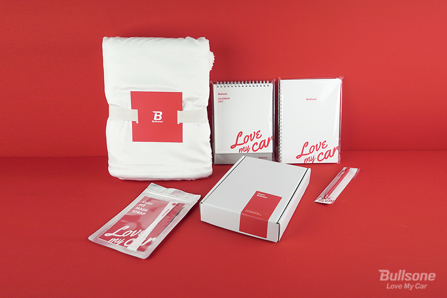 우선 서류 전형과 면접을 거쳐 선발 된 3기 신규회원 50명에게는 불스워너 한정 웰컴굿즈가 전달 되었습니다. 구성품은 차량용 스티커, 차량 주차번호판, 머그컵, 티셔츠 이렇게 총 4가지였는데요. 기본적이면서도 알찬 구성으로 불스워너 회원분들에게 인기를 얻었습니다.