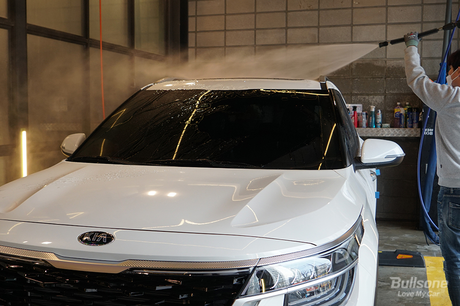 - 세차 꿀팁: 고압수는 이물질이 차체에 튀지 않도록 차량 위쪽에서 아래쪽으로 쓸어내리듯 뿌려줘야 합니다.