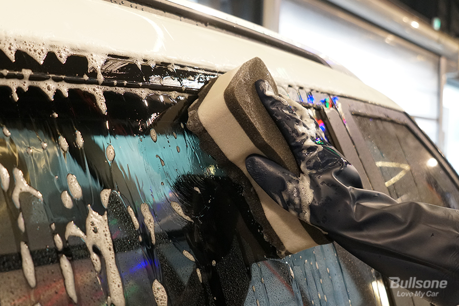 카샴푸로 묵은 얼룩과 오염물을 제거해주세요. 이때 차량에 흠집이 생기지 않도록 거품을 충분하게 유지하며 유리, 도장면 등을 꼼꼼하게 닦아야 합니다.