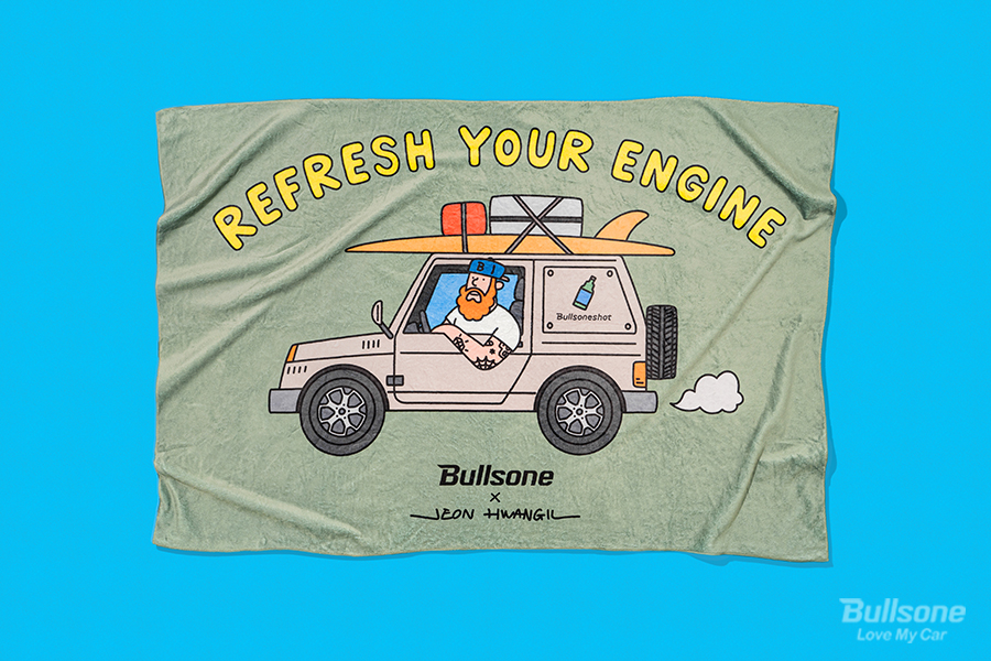 특히 이번 불스원샷 굿즈에는 ‘엔진’을 단순히 자동차의 부품이 아닌 심장을 뜨겁게 하는 열정, 목표, 휴식으로 정의한 리프레시 유어 엔진, 리프레시 유어 라이프(Refresh your Engine, Refresh your Life) 슬로건도 함께 녹아 있는데요. 차를 타고 캠핑을 떠나는 순간, 내 차를 관리하는 순간 등을 불스원샷과 함께 표현했습니다.