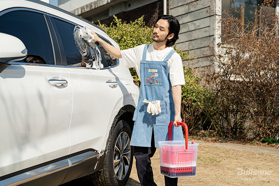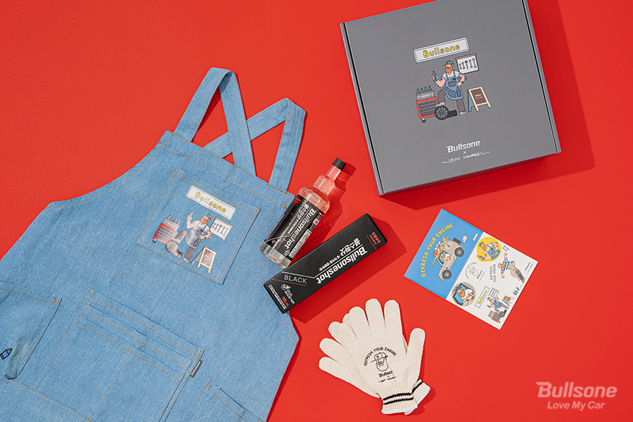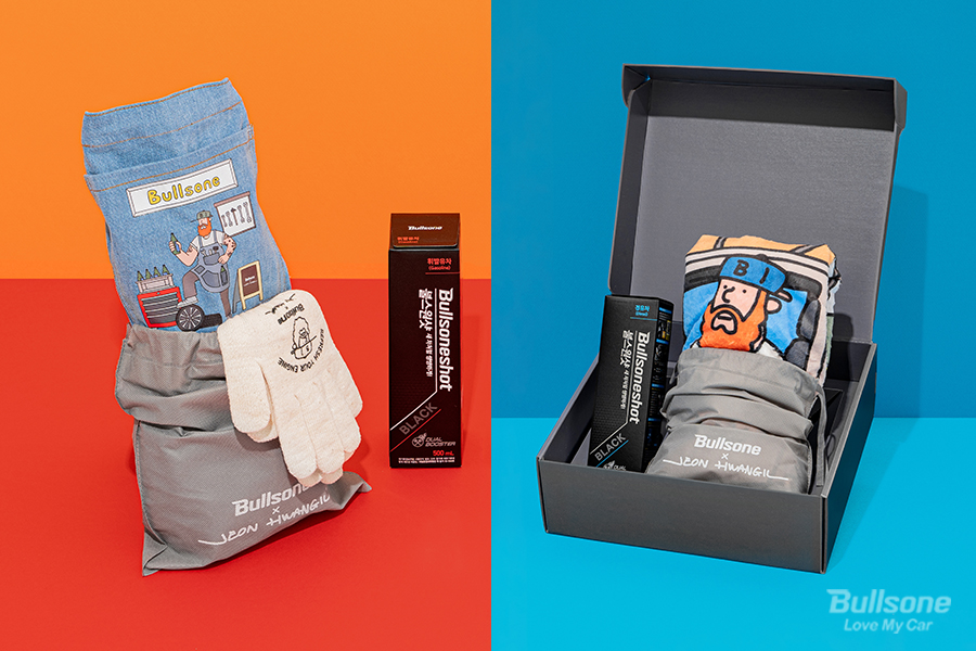 연청색 데님 소재의 ‘에이프런’은 멋스러운 워싱과 함께 불스원샷을 보관할 수 있는 전용 주머니로 실용성까지 더했는데요. 손등에 전황일 작가의 시그니처 일러스트가 그려진 ‘우드글러브’는 일반 목장갑보다 두꺼운 재질을 사용하여 캠핑, 세차 및 차량 정비 등 언제 어디서든 유용하게 사용할 수 있는 것이 특징입니다.