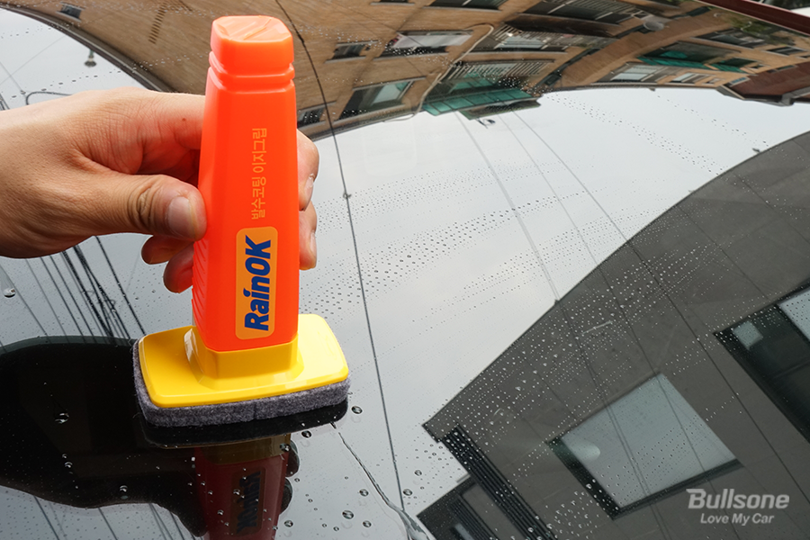 1 레인OK 유막제거 이지그립 사용 전, 유리면의 모래나 진흙을 물로 깨끗이 씻어내고 물기는 남긴 상태로 둔다.