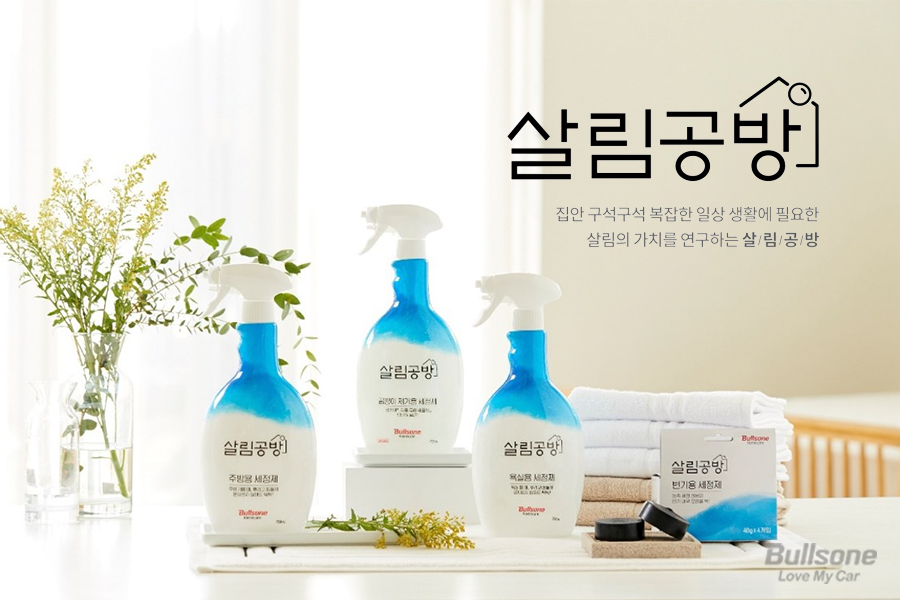 빛나는 화장실을 만들고 싶으시다면 불스원의 살림공방 제품을 추천합니다. 살림공방 제품은 생활 공간 용도에 따라 특화된 스프레이 타입의 욕실용, 주방용, 곰팡이 제거용 세정제 3종과 변기용 세정제의 총 4종의 라인업으로 출시되었습니다. 살림공방 제품은 욕실, 변기, 주방 등 집안 구석구석에 발생한 트러블을 강력한 세정력으로 깨끗하게 제거해 줍니다.