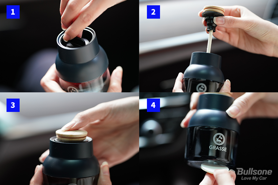 3 방향제 본품에 멤브레인을 넣고 후면을 다시 끼워준다.
