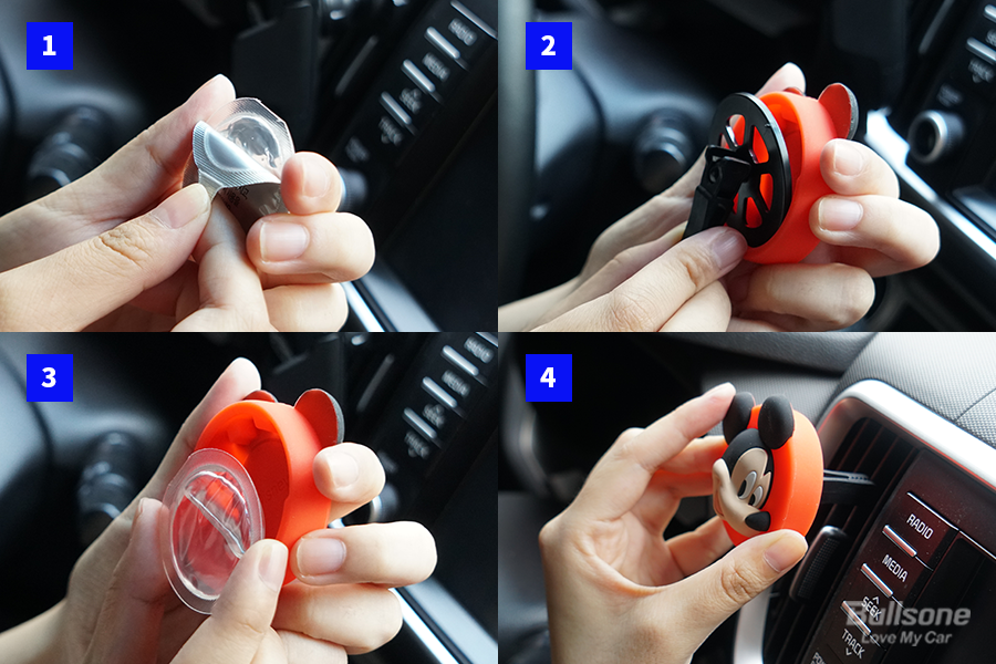4 제품의 클립을 자동차 통풍구에 끼워 고정시킨다.