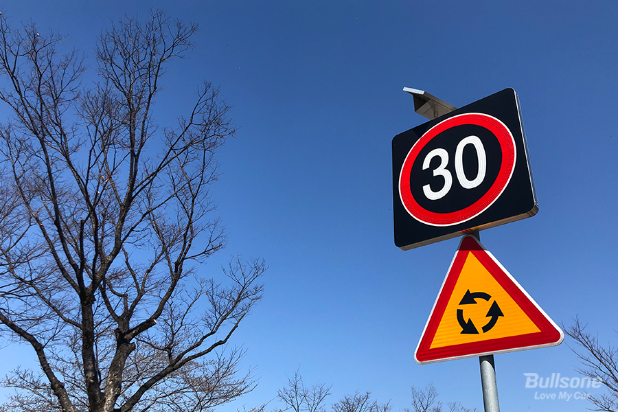- 회전교차로 : 회전교차로는 한 쪽 방향으로 돌며 원하는 방향으로 나갈 수 있는 원형 교차로입니다. 이 회전교차로 표지판이 보이면 속도 30km 이하로 서행해야 하며 진입차량은 회전차량에게 양보해야 합니다.