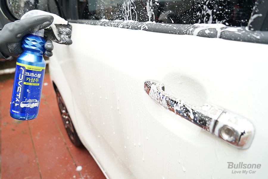 물에 충분히 적신 자동차 이젠 카샴푸로 관리해 줘야겠죠? 고압수로 제거되지 않은 얼룩을 제거하는 과정인데요. 일반적인 카샴푸들은 물에 희석해 거품을 만들어야 하는 반면, 크리스탈 카샴푸는 물에 따로 희석할 필요 없이 거품형태로 바로 분사해 쓸 수 있는 제품이기 때문에 빠르고 간편한 세차가 가능합니다. 또한 크리스탈 카샴푸는 자동차 도장면, 범퍼, 유리, 타이어 세정에 효과적이라 다용도로 사용 가능해 차량 부위별 세차용품을 따로 준비할 필요없이 간편하죠! 크리스탈 카샴푸와 워시 미트 하나면 세차는 문제없습니다!