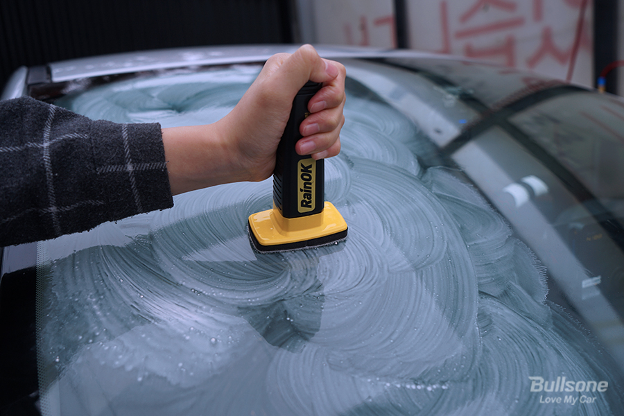 불스원 레인OK 유막제거 이지그립은 작업이 간편한 스틱 타입의 자동차 유막제거제입니다. 이중 세정 입자로 유막 제거력을 높이고, 벨크로 패드를 적용하여 닦임성을 높인 것이 특징입니다.