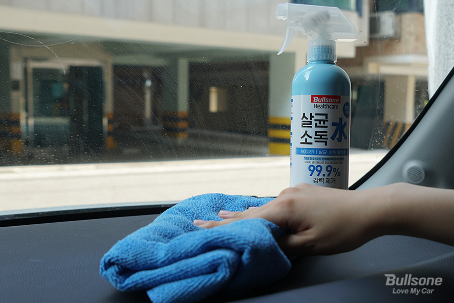 휴가철 타지역에 방문했다면 방역은 필수겠죠? 차에 보이는 먼지뿐만 아니라 보이지 않는 각종 세균과 바이러스에 노출되지 않도록 전용 소독제를 사용하여 실내 소독관리도 해줘야 합니다. 불스원 살균소독수는 대장균, 황색포도상구균, 폐렴균 등 51종의 유해 세균 및 바이러스 제거뿐만 아니라, 고려대학교 의료원 산학협력단에서 진행한 '코로나19 바이러스 제거' 실험에서 효과가 입증되었으며, 다양한 재질의 내장재를 손상 없이 편리하게 세정하는 제품입니다. 차량에 손이 많이 닿는 핸들이나 기어봉 등에 골고루 분사한 후 마른 천이나 수건으로 구석구석 닦아 주세요.