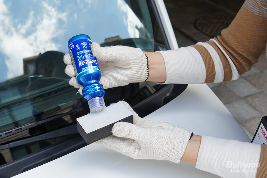 3. 어플리케이터에 내용물을 묻히고 유리면에 원을 그리듯 골고루 문질러주세요.