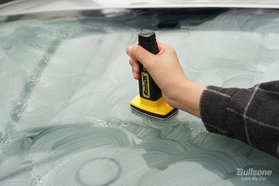 3. 어플리케이터에 내용물을 묻히고 유리면에 원을 그리듯 골고루 문질러주세요.