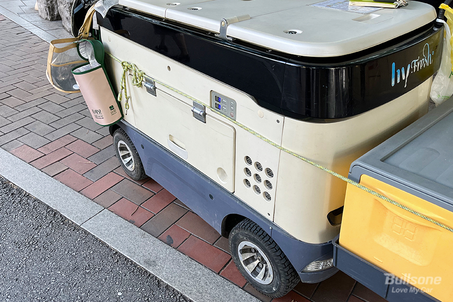야쿠르트 카트에는 이름이 있습니다. 바로 ‘코코’인데요. 코코는 콜드 앤드 쿨(Cold & Cool)이라는 의미가 있다고 합니다. 탑승형 냉장 카트라는 본 목적이 돋보이는 명칭인 것 같습니다. 코코는 총 220리터의 보관함을 보유하고 있어, 제품을 시원하게 전달할 수 있습니다. 또한, 야쿠르트 카트를 직접 운행하시는 프레시 매니저분들의 편의성을 증진하기 위해 전조등, 캐노피 등이 탑재되어 있기도 합니다. 야쿠르트 카트는 시속 4km와 시속 8km 두 가지 속도로 주행 가능합니다.