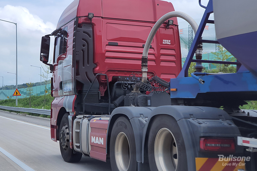 전자제어식 에어 서스펜션은 차고 센서와 에어 스프링 압력 및 운전자의 스위치 조작을 감지하여 에어 스프링의 높이 및 압력을 감지하는 장치인데요. 화물 중량에 관계없이 안정적인 주행 조건을 제공합니다. 한 스프링 적용 차량에 비해 타이어 및 노면에 작용하는 힘이 작아 타이어 수명 증대와 도로의 파손도를 줄여주고, 에어 스프링 적용 차축의 축 하중 표시가 가능하기 때문에 과적을 예방할 수 있습니다.