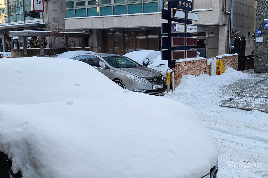 밤 사이 함박눈이 내렸고 차는 눈으로 꽁꽁 얼어버려 유리창 성에는 제거될 기별도 안 보이고 히터를 틀어보지만 쉽게 녹을 거 같지도 않습니다. 와이퍼의 워셔액도 얼어버리고 얼음 위에서 드드득 하며 허공질하는 와이퍼는 야속할 뿐인데요.
