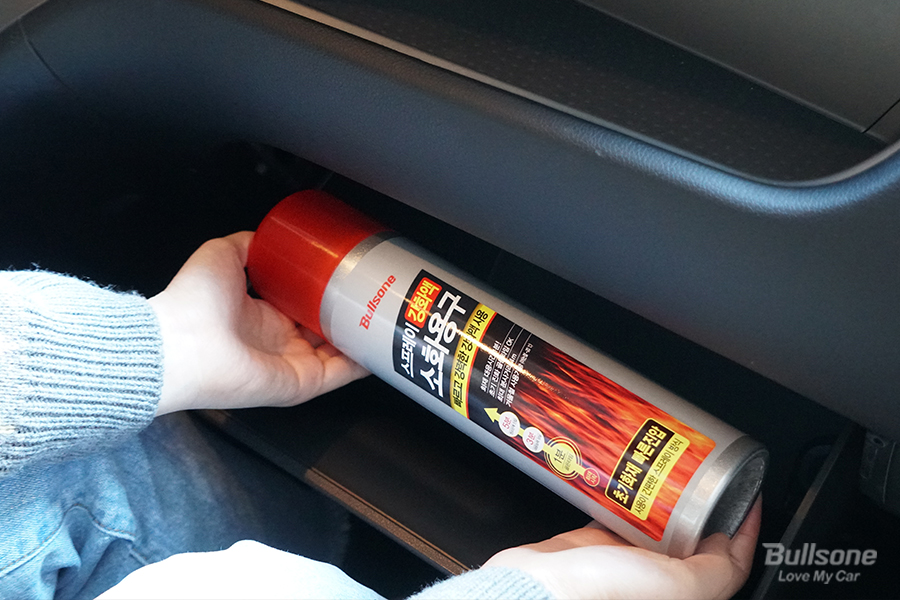 화재발생한 후 초기 1분이 골드타임이라는 사실! 다들 알고계신가요? 이 골드타임을 놓치지 않기위해서 스프레이 강화액 소화용구를 사용해보세요! 불스원 스프레이 강화액 소화용구는 유류화재 진압이 가능한 강화액 소화용구입니다. 액체로 만들어진 강화액 소화용구로 소화력이 뛰어납니다. 스프레이 형태로 누구나 쉽게 사용할 수 있으며, 충전가스가 LPG아닌 질소방식으로 여름철 차량내부 폭발을 방지해줍니다. 최대 4m 분사거리에서 23초간 연속 분사가 가능하다는 것도 장점인데요. 알류미늄 캔을 사용하여 가볍고 녹슬지 않으며, 글로브 박스에 간편하게 보관해보세요.