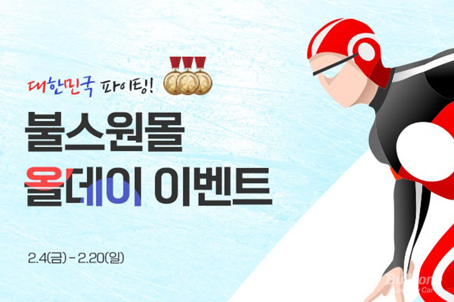 불스원은 동계 올림픽에 참가하는 대한민국 선수들을 응원하고자 올림픽 기간인 20일(일)까지 불스원몰 올데이 이벤트를 진행합니다. 가장 먼저 대한민국 금메달 획득 시 다음날 불스원샷 골드 1+1 판매가 실시됩니다. 또한 매일 매일 할인 이벤트도 진행되는데요. 출력 향상을 위한 불스원샷 블랙 듀얼부스터 1+1, 고속무선충전기 거치대 15W 50% 할인, 레인 OK 에탄올 3in 1 코팅 워셔 등을 할인된 가격에 구매할 수 있습니다.