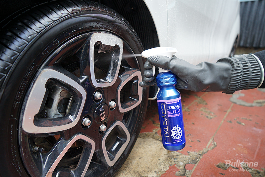 1. 더러워진 휠에 골고루 뿌리면 오염물과 반응합니다.