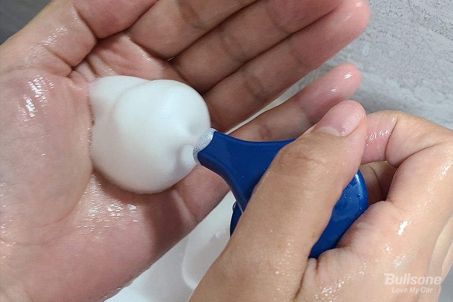1. 비누 거품을 충분히 낸 후 양 손바닥을 마주 대고 문지른다.
