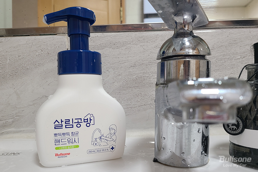 어른부터 아이까지 온 가족이 함께 사용하는 핸드워시인 만큼 성분 확인은 필수입니다. 특히 어린아이가 있는 집이라면 더욱 꼼꼼히 확인해야 하는데요. 불스원의 홈 케어 브랜드 살림공방 항균 핸드워시는 대한피부과학연구소에서 실시한 항균 테스트에서 대장균과 황색 포도상 구균 등 유해 세균 99.9% 제거 효과를 입증받은 제품입니다. 트리클로산, 파라벤 7종, 트리에탄올아민 등 19가지 유해 성분과 식약처에서 고지한 26가지 알레르기 유발 향료를 첨가하지 않아 어린아이부터 어른까지 모두 안심하고 사용할 수 있습니다.