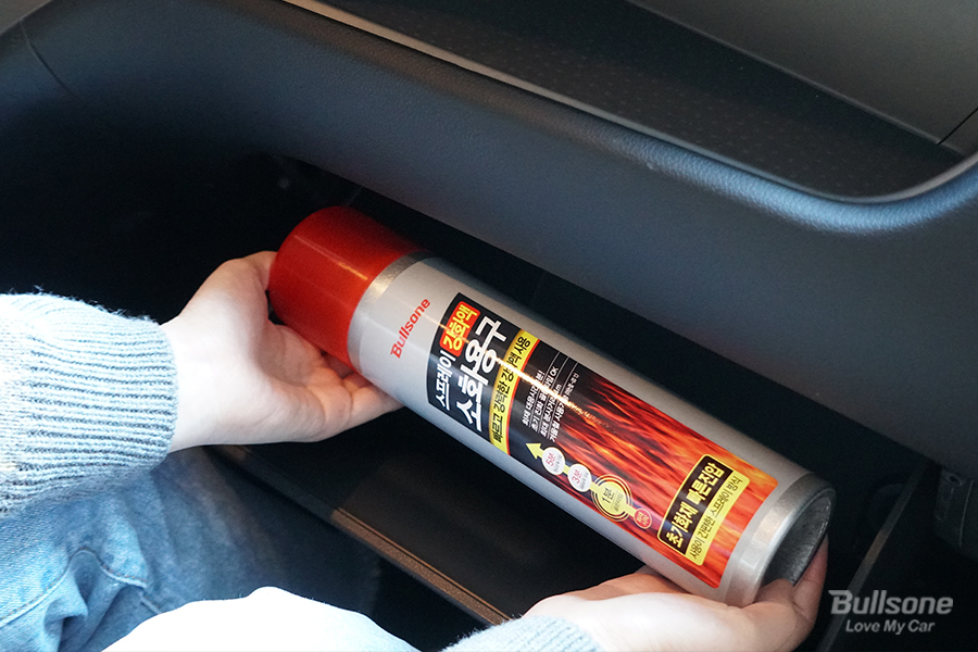 만약의 상황에 대비해 차량용 소화기를 비치해 두는 것이 좋습니다. 화재 발생 시 초기 진압으로 큰 사고로 이어지지 않게 예방하는 것이 중요합니다. 불스원 스프레이 강화액 소화용구는 유류화재 진압이 가능한 강화액 소화용구입니다. 누구나 쉽게 사용 가능한 스프레이 형태이며 알루미늄 캔으로 제작되어 가볍고 녹슬지 않습니다. 최대 4m 분사거리에서 23초간 연속 분사가 가능해 최소 용량으로 강력한 소화력을 지니고 있습니다.
