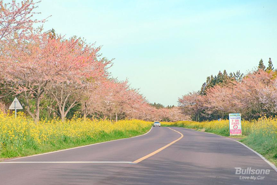 코로나19의 여파로 제주도 벚꽃축제도 3년 연속 취소되었습니다. 취소의 아쉬움을 드라이브로 달래볼까요? 서귀포시 표선면 가시라 녹산로에서는 원래 매년 제주 유채꽃 축제가 열립니다. 코로나 이후로는 비대면으로 열리고 있습니다. 녹산로는 조선시대 최고의 목마장이었던 녹산장과 갑마장을 관통하는 길로, 한국의 아름다운 길 100선에 들정도로 아름다운 곳입니다. 특히 봄이면 10km에 달하는 도로 주변으로 분홍 벚꽃과 노랜 유채꽃이 어우러져 장관을 이루니, 드라이브 코스로 추천드립니다.