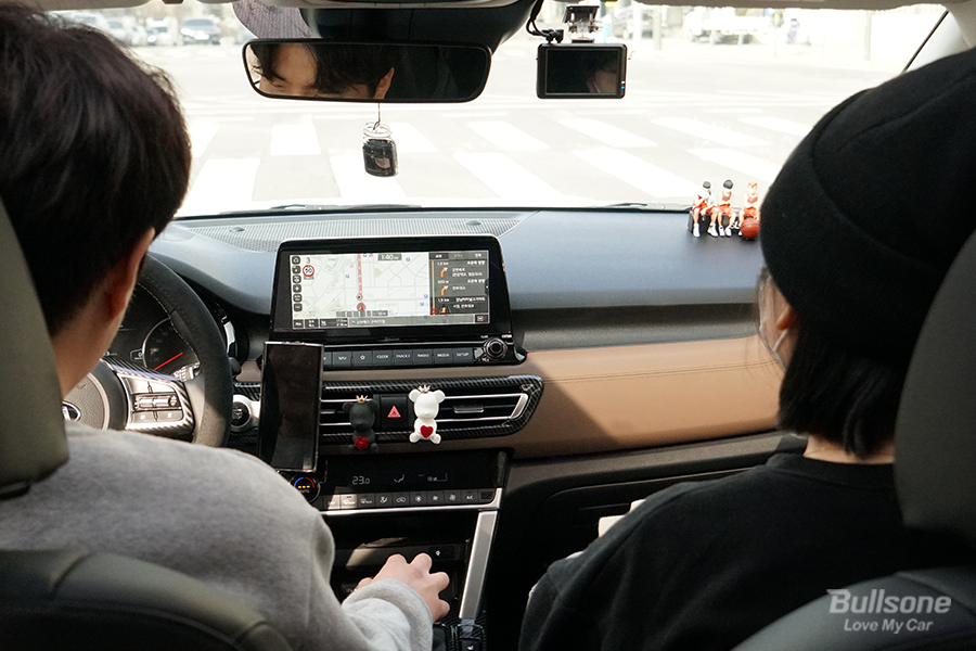 개문사고 예방법 두 번째는 후측방 안전 기능을 활용하는 것입니다. 후측방 모니터링 시스템은 가장 최근에 도입된 시스템으로 사이드 미러로 위험을 알려주는 후측방 경보시스템과 달리 후방 카메라 영상이 계기판 클러스터에 바로 보이는 시스템입니다. 따라서 후측방에서 고속으로 다가오는 차량이나 운전자의 사각지대를 바로 확인할 수 있습니다.