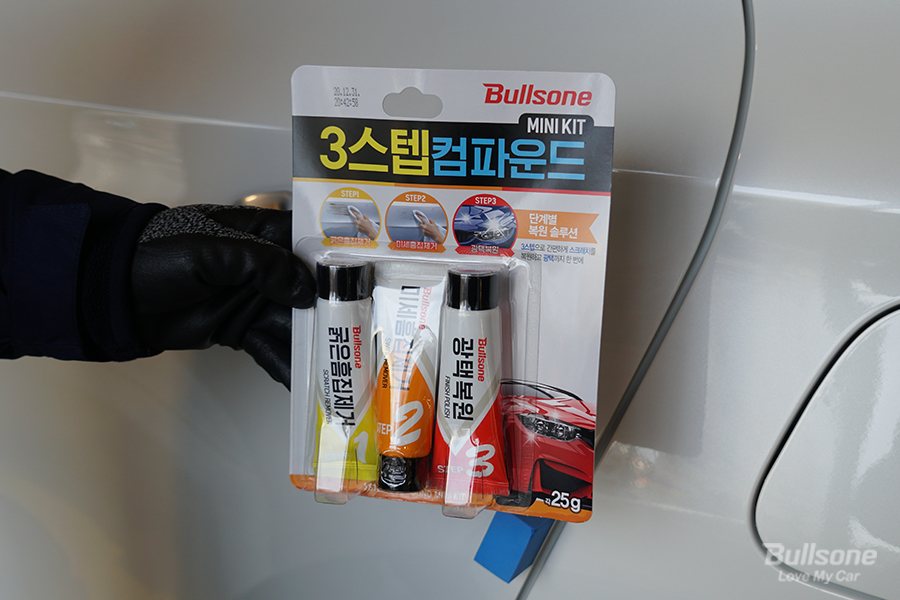 불스원 스텝 컴파운드 미니는 3 스텝으로 쉽고 간편하게 스크래치를 제거하고 광택을 복원할 수 있는 제품입니다. STEP 1 굵은 흠집 제거용은 도장면의 페인트 자국, 굵은 흠집, 물 자국, 송진, 타르, 녹, 기름때 등을 제거할 수 있는 굵은 입자의 연마제입니다.