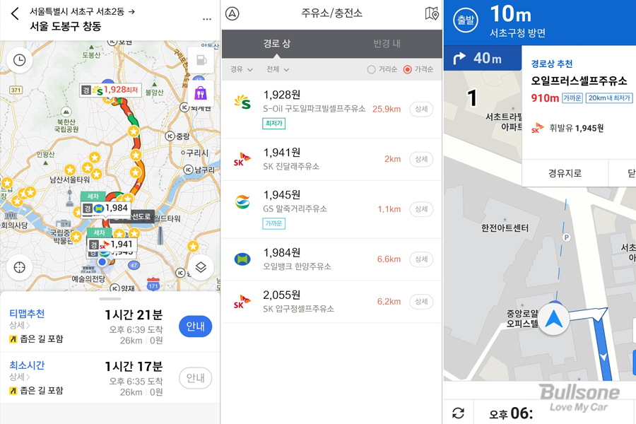 스마트폰에서 많이 사용하는 네비게이션 앱에서도 실시간으로 주유 정보가 반영되어 가격 비교가 가능합니다. 특히 내가 가는 목적지 경로에 맞추어 주유소 리스트를 보여주기 때문에, 거리별로 가격별로 한 눈에 볼 수 있다는 것이 장점이에요. 주행 상황에 맞추어 효율적이면서도 저렴한 주유를 할 수 있답니다.