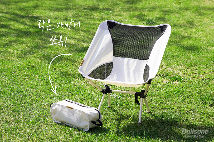이 제품은 빠른 설치와 조립이 가능한 폴더블 디자인이라 간편하게 들고 다닐 수 있습니다. 또, 캠크루 접이식 경량 캠핑 의자를 넣을 작은 가방까지 기본 제공되어 휴대성이 굉장히 편리한 제품입니다.