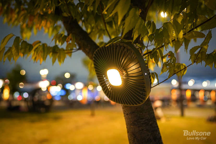 이 제품을 나무에 거는 순간 모두가 부러워하는 인싸템이 되었어요. 주변에서 관심을 가지기 시작했고, 그 분위기를 즐겼답니다. 만약 캠핑을 가서 사용한다면, 텐트 내부 천장이나 야외 타프에 손쉽게 걸어서 써큘레이터와 조명으로 활용할 수 있습니다.