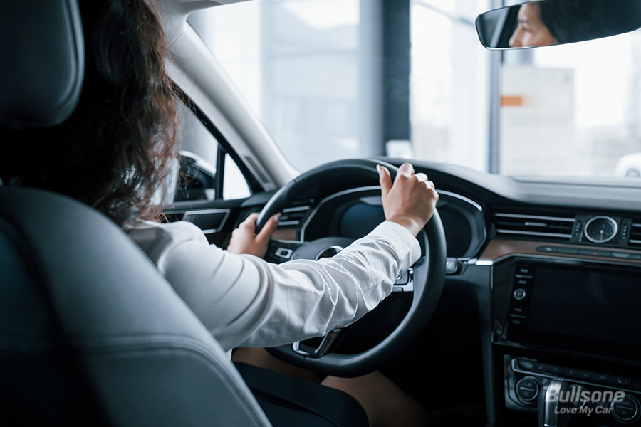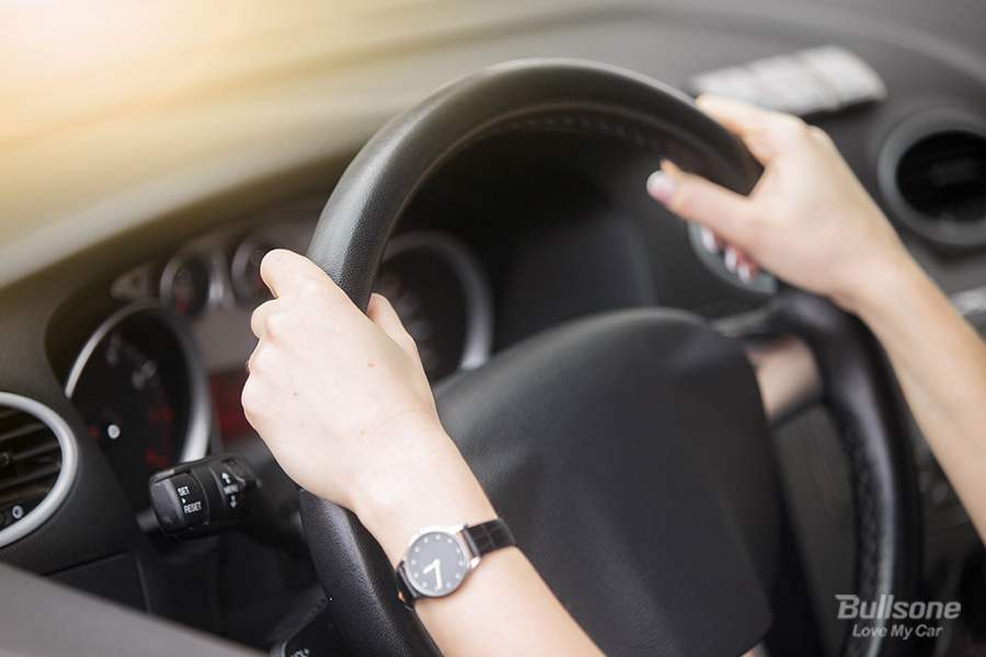 올바른 핸들 조작을 위해서 손의 위치를 어떻게 두는 게 좋을까요? 먼저 핸들을 잡은 손은 시계 방향 3시와 9시를 가리키는 위치로 올려주세요. 해당 위치에 손을 두면 자연스레 양쪽 겨드랑이가 조여지는데요. 몸통을 팔로 지탱할 수 있기 때문에 편안한 자세가 됩니다. 또한, 핸들을 크게 꺾을 수 있으므로 갑작스러운 사태에도 신속하게 대응할 수 있습니다.