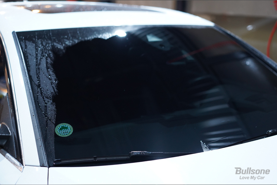 다시 한번 살펴봐도 굉장히 깔끔해진 앞 유리를 볼 수 있습니다. 특히 유막 제거를 한 곳은 물기가 남아있지 않은 반면, 유막 제거를 하지 않은 곳은 방울들이 맺혀 물기가 남아있는 모습을 확인할 수 있어요. 견고한 불소코팅막 세정력이 기존 이지그립 대비 2배나 향상되었기 때문에 차이가 더 확실한 것 같습니다.