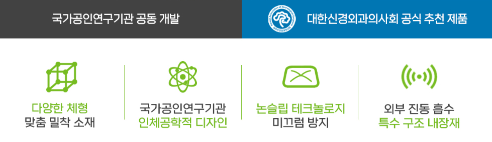 - 에어셀 베타젤 : 뛰어난 탄력성, 복원력으로 균일한 체압을 분산시켜줍니다. 충격과 진동을 효과적으로 흡수해요.