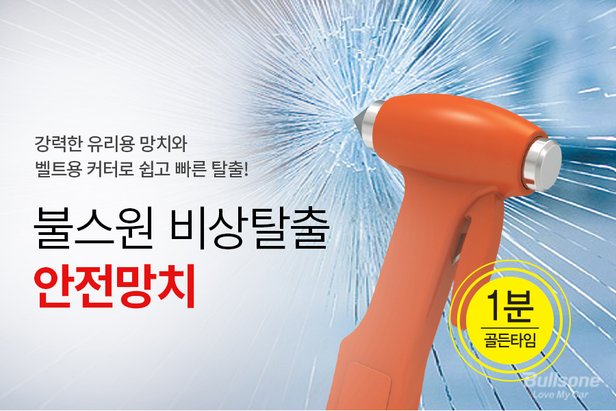 일반적으로 차량이 사고를 당하면 차량이 찌그러지거나 전복될 수 있습니다. 사고가 발생하면 안전띠가 풀리지 않는 상황이나 차량 탈출을 위해 유리창을 부숴야 하는 상황이 생기게 됩니다. 불스원 비상용 안전망치는 강력한 중량의 유리용 망치와 벨트용 커터를 구비하고 있어 위급 상황에 빠른 탈출을 도와줍니다. 또한, 전용 거치대가 있어 차종에 상관없이 자동차 어디든 비치할 수 있습니다. 간단한 차량용품 안전망치 구비로 나에게도 일어날 수 있는 응급상황을 꼭 대비해주세요!