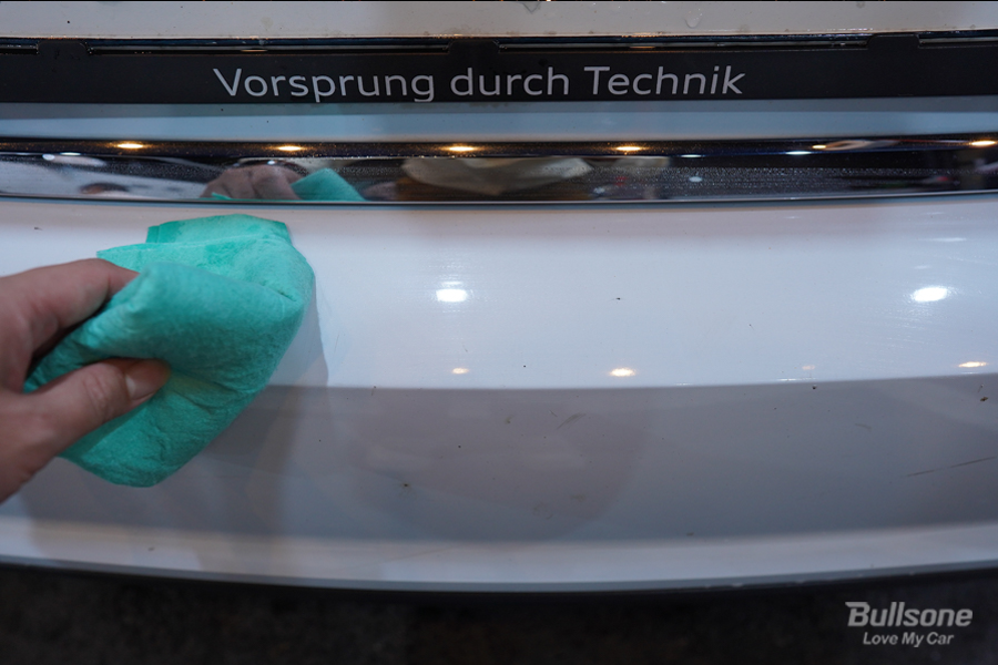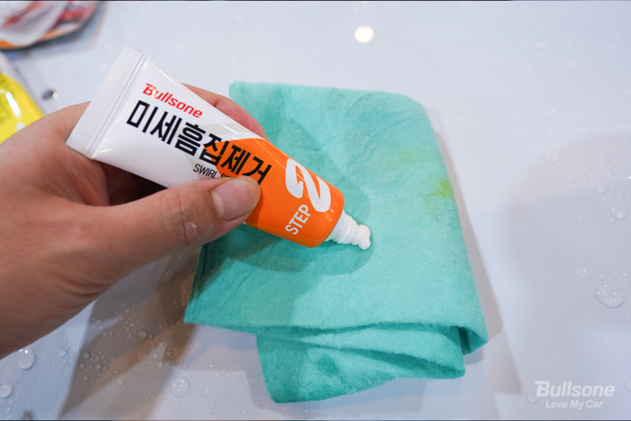STEP 2! 굵은 흠집 제거용 제품을 사용한 부위에 미세 흠집 제거용으로 가볍게 문질러 줍니다.