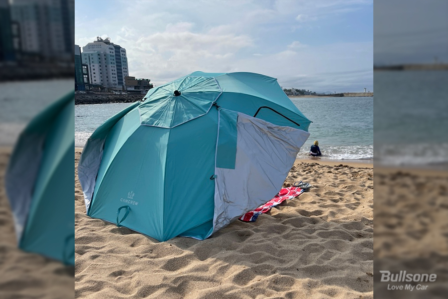 올여름 바다 물놀이 다녀올 때 캠크루 1초 우산 텐트를 너무 유용하게 사용하셨다는 착님! 원터치 텐트는 펴는 건 쉽지만, 접는 게 어려워 평소에는 사용하지 않으셨다고 하는데요. 파라솔 텐트는 사용법이 너무 간단하고 색감도 예뻐 만족스럽다는 후기를 남겨주셨습니다.
