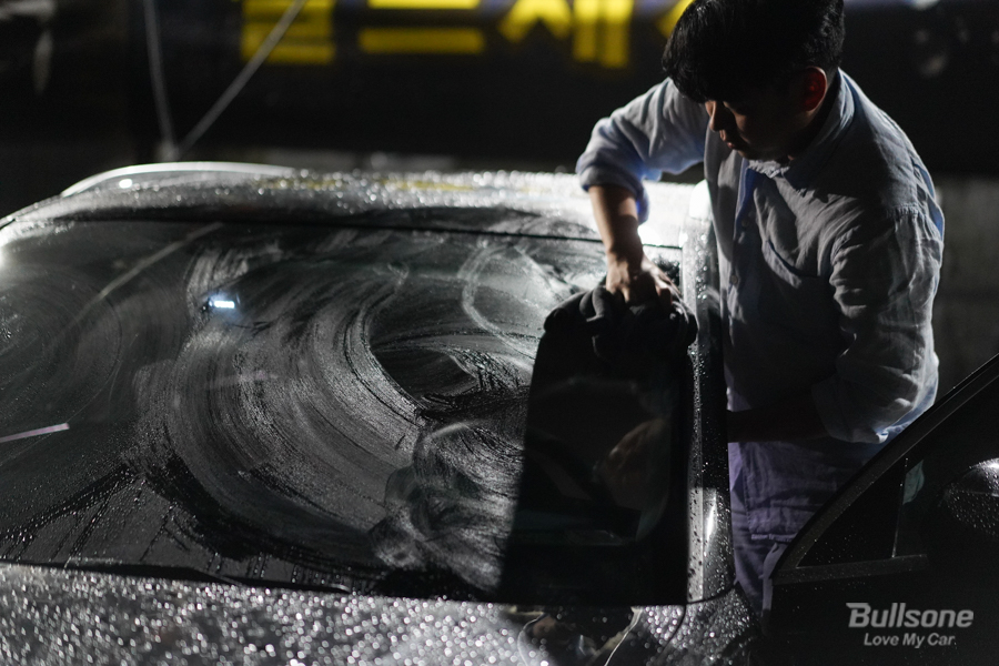 분사 후 바로 극세사 천으로 가볍게 닦아주면 깨끗한 세정이 가능합니다. 차량 유리 전체적으로 닦기가 어렵다면, 저처럼 차 앞문을 열어 밟고 올라가시면 전체적으로 닦기가 굉장히 쉬워요.