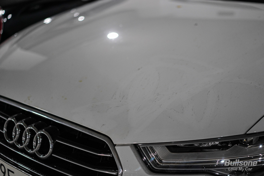 크리스탈 드라이 카샴푸가 가장 마음에 들었던 점은 어디서든 세차가 바로 가능했던 점인데요. 중요한 약속이 있을 때, 세차하고 나왔는데 갑자기 한 부분만 더러워졌을 때, 빨리 급하게 세차를 해야 할 때 사용하기 가장 적합하기 때문이에요. 실제 제 차량을 야외 주차장에 세워 놨는데 나무에서 오염물이 떨어지면서 금세 더러워졌습니다. 물티슈로 간단하게 닦아본다는 게 차량이 더 지저분해진 상황이에요.