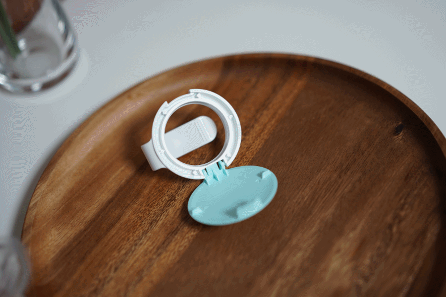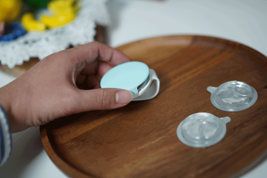 ③ 멤브레인 제품의 튀어나온 부분이 아래쪽 홈으로 향하게 넣고 닫아주면 끝! 제품 조립이 완성됩니다.