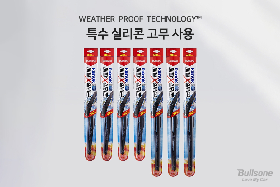 불스원 레인OK 메탈 실리콘 와이퍼는 WPT 기술의 특수 실리콘 고무가 사용되어 내열성, 내한성, 내오존성을 모두 갖춘 제품입니다. 혹한, 혹서, 자외선 등 변동이 쉬운 한국 날씨에도 견딜 수 있도록 설계되어, 초기 성능을 오래 유지시켜줍니다. 이러한 극한 환경에서도 변형이나 손상이 적어 오랫동안 우수한 닦임성을 느끼실 수 있습니다.