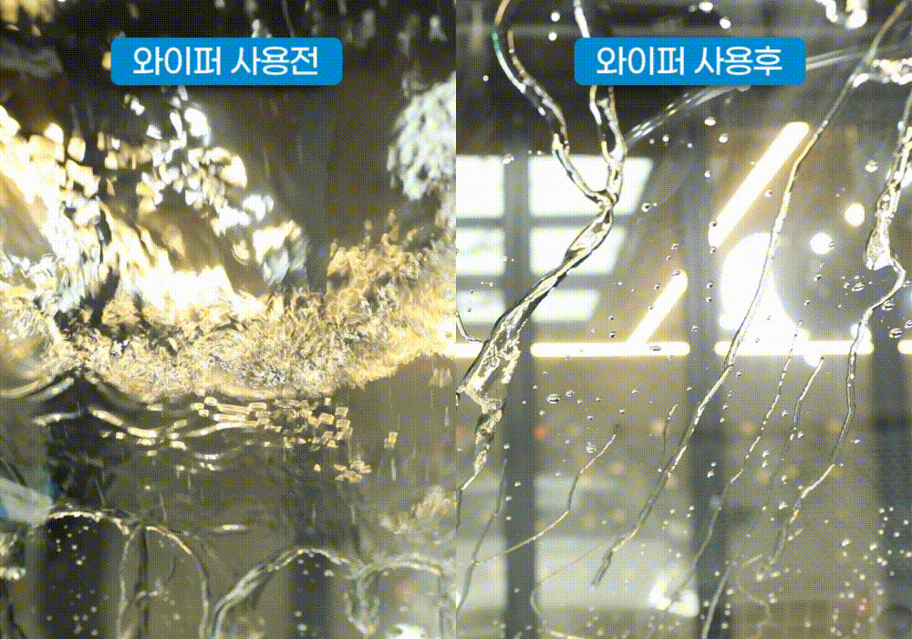 단, 와이퍼 작동 전에 전면 유리에 묻은 이물질이나 먼지, 유막 등을 전용 제품으로 깨끗이 닦은 후 물기를 제거하고 시작해 주세요.