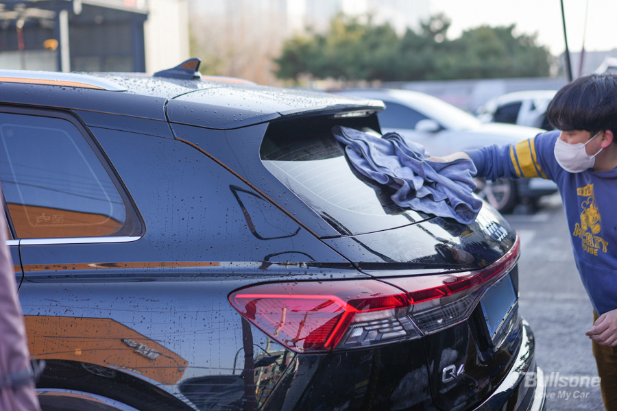 마무리는 대형 타월을 이용하여 물기가 생기지 않게 깨끗이 닦아줍니다.