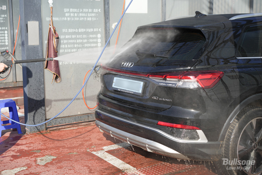 일단 루나틱 슬릭폴 왁스 작업을 하기 위해서는 기본적인 세차를 끝내고 시공해야 하는데요, 셀프 세차장에서는 고압수로 차를 1차로 씻겨주고 거품 칠을 해준 후, 다시 고압수로 깨끗하게 세척하면 기본적인 세차가 끝납니다.