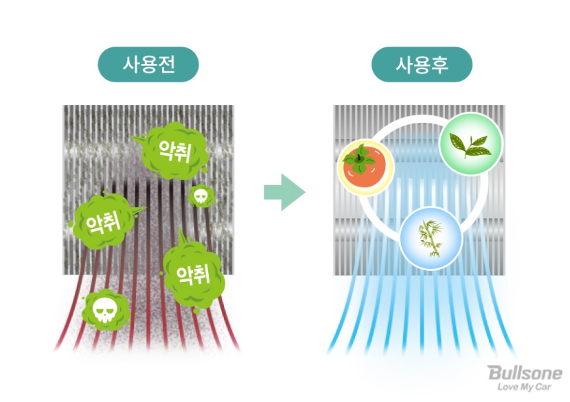 특히 차량 내 에어컨 히터 필터를 교체한지 얼마 되지 않아 악취가 발생되면, 다시 교체하기도 애매한데요. 차량용 탈취제를 사용하면 에어컨 히터 속의 다양한 악취 원인을 탈취하기 때문에, 깊은 속에서부터 악취가 나와도 훈증캔을 사용하시면 걱정 없습니다.