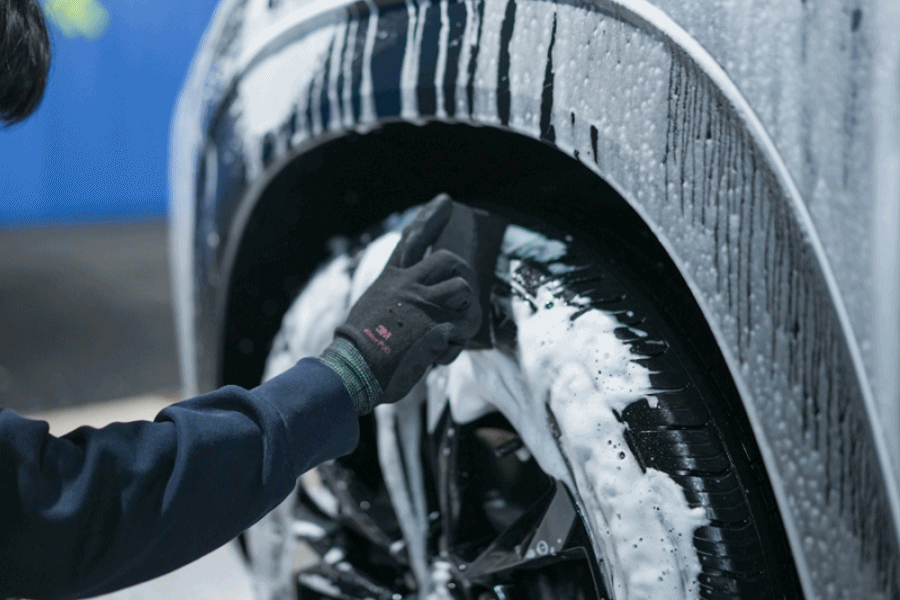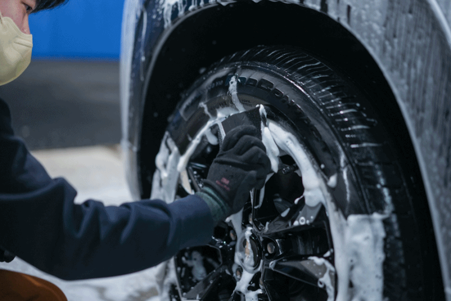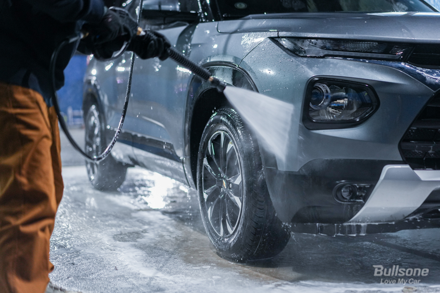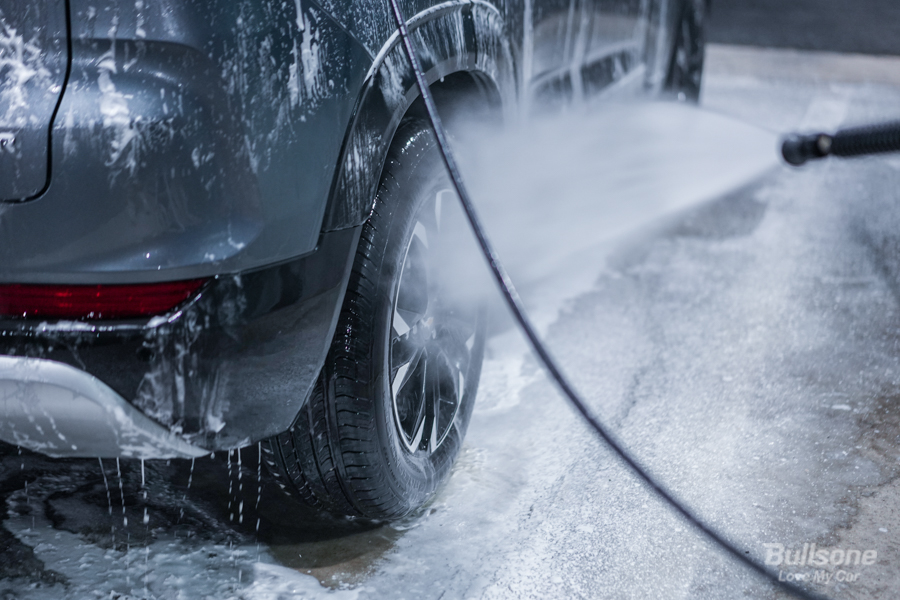 ⑤ 다 문질렀으면, 표면이 마르기 전 고압수로 깨끗하게 씻어주세요. 그럼 휠과 타이어의 세척은 깔끔하게 끝!입니다.