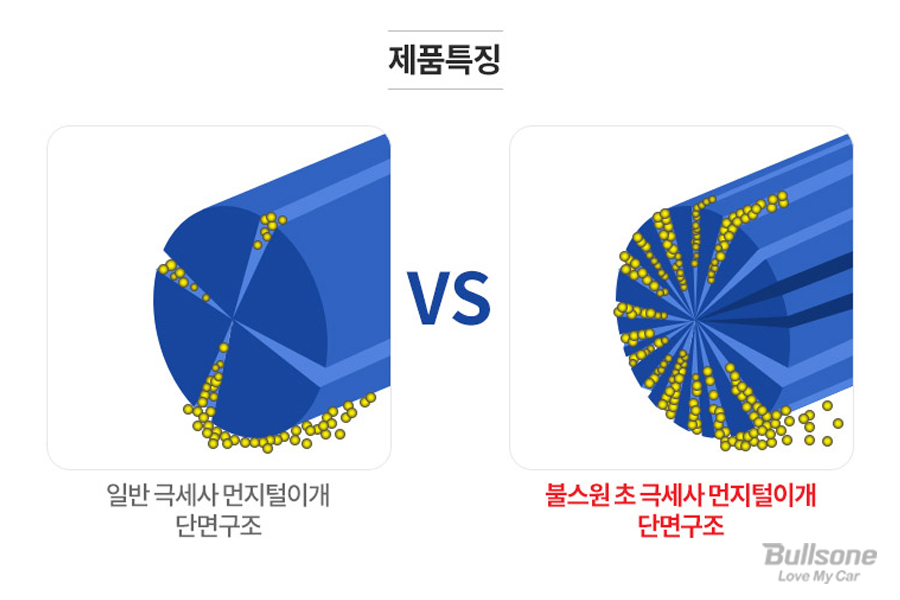 불스원 초극세사 프리미엄 먼지떨이개는 기존 먼지떨이개보다 더 강력한 초극세사 섬유 소재로 2배 빠른 먼지 제거 성능을 갖추고 있습니다. 따라서 세차를 한 후 물이 없는 상태에서도 새 차 같은 관리를 지속하기 굉장히 쉽습니다.
